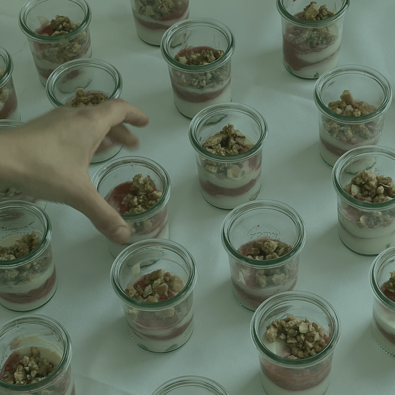 So entsteht Catering, das leicht, ausgewogen und einfach richtig gut ist. Entweder als Buffet oder nachhaltig serviert in Gläsern.